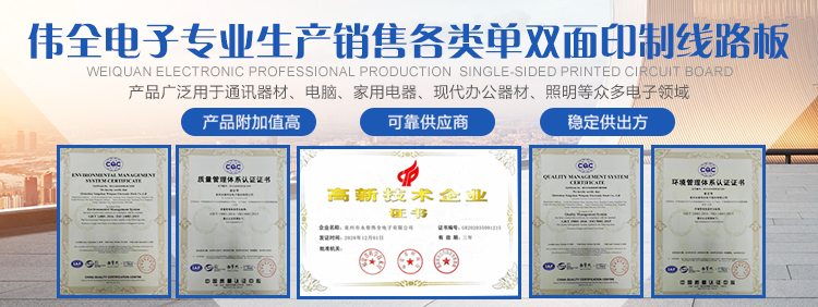 泉州永春偉全電子股份有限公司是一家合資企業(yè)。創(chuàng)辦于2011年,專業(yè)生產(chǎn)各類單面印制線路板,是福建省專業(yè)生產(chǎn)印制線路板的主要廠家,公司坐落在泉州市永春縣桃城鎮(zhèn)留安開發(fā)區(qū)添福工業(yè)園,占地面積達10多畝,交通方便。公司現(xiàn)有員工80多人,總投資3000多萬元人民幣,年生產(chǎn)能力逾20萬平方米。